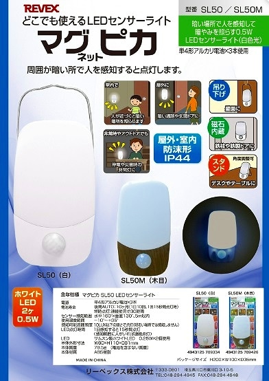 リーベックス/REVEX マグピカ 木目 LEDセンサーライト SL50M