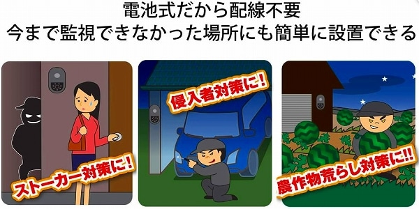 ・電池寿命:センサーライトOFF時動画を1日10回録画して約3カ月。※センサーライトがONの時は短くなります。