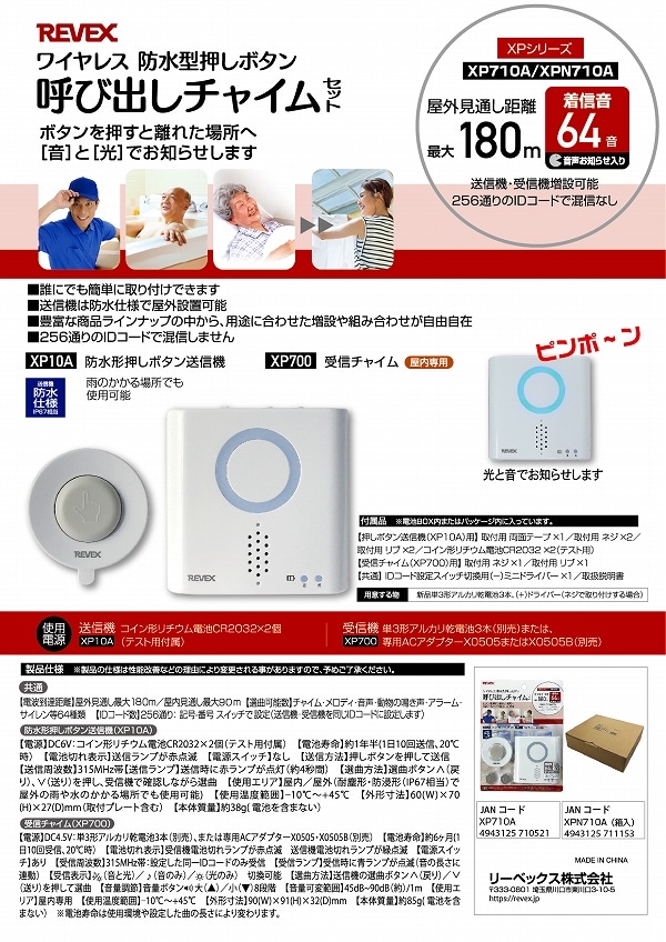 リーベックス/REVEX 防水型押しボタンチャイムセット XP710A