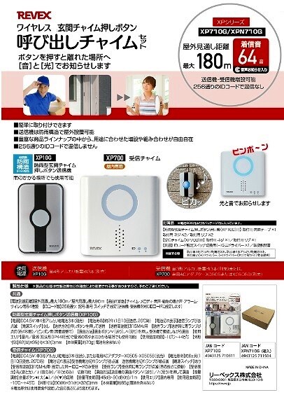 リーベックス/REVEX 玄関呼出しチャイムセット XP710G