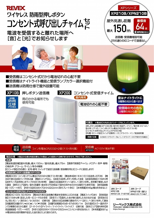 ・押しボタン送信機は防雨形なので屋外やお風呂場でも使用できます。(防水ではありません。)