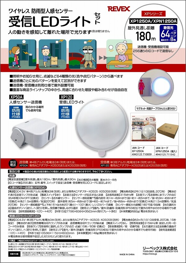りーべっくす ライト 安心 安全 便利 非常灯 受信LEDライト付 ワイヤレス 防雨型 増設用 防犯 見守り 介護 玄関 受信機 防犯機器 安全機器 老人対策器具 照明器具 無線周辺機器 ノベルティ・ギフト用品