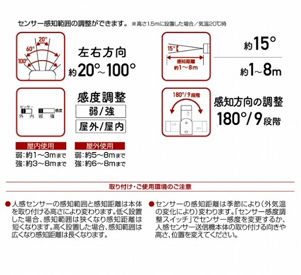 ・防水:防沫・防塵形(IP44)野外でも設置できます。