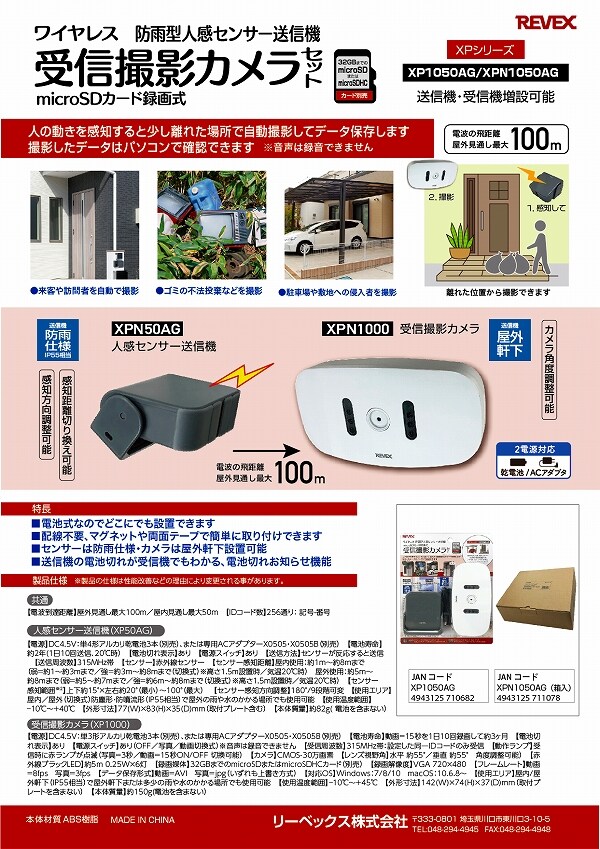 リーベックス/REVEX ワイヤレスセンサー受信カメラ XP1000