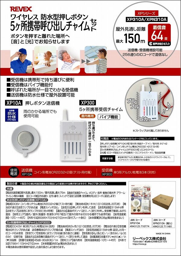 リーベックス/REVEX 5ヶ所携帯呼出しチャイムセット XP310A