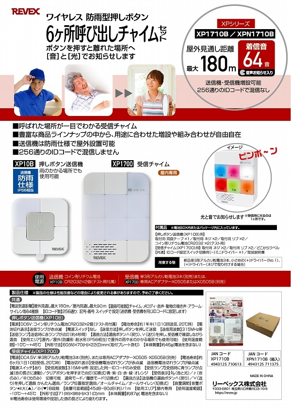 リーベックス/REVEX 増設用6ヶ所受信チャイム XP1700