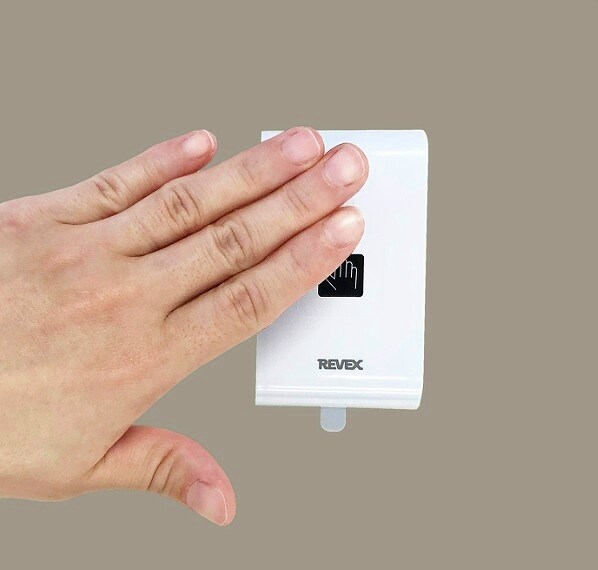 送信機に手をかざすとセンサーが感知し、離れた場所にある受信機が光とチャイム音でお知らせします。