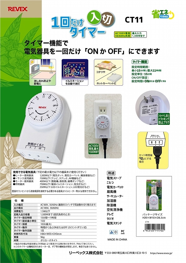 リーベックス/REVEX プログラムタイマー1回だけ CT11