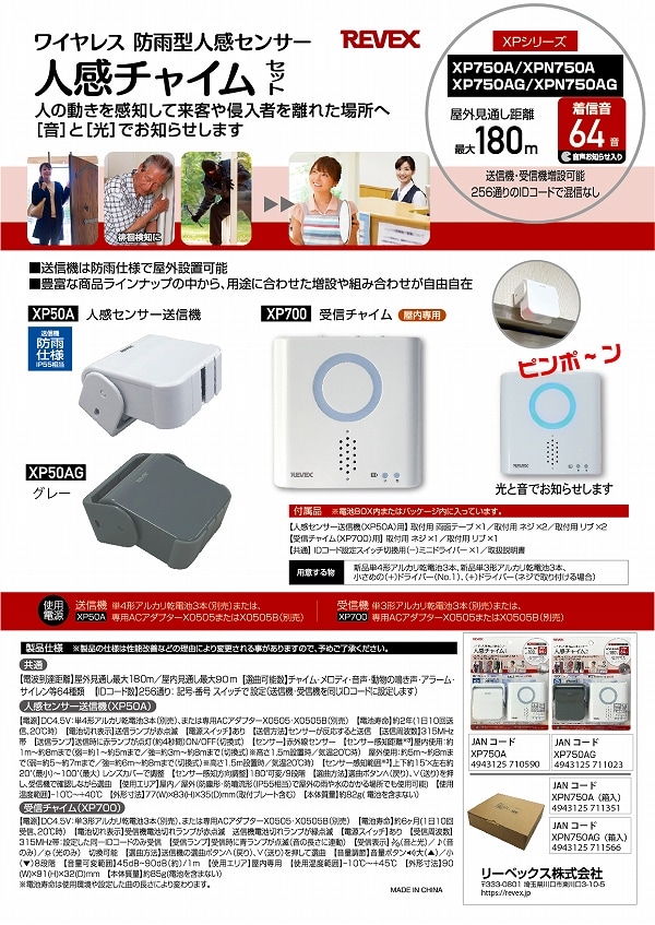 リーベックス/REVEX 人感センサーチャイムセット XP750AG