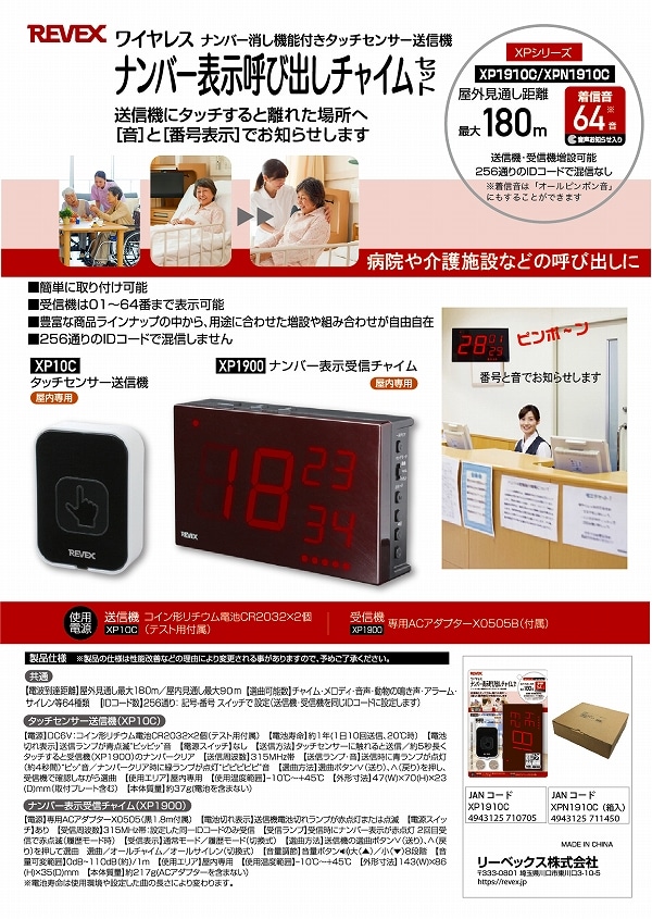 病院 施設 店舗 音 光 番号表示 受信チャイム 送信機 防犯機器 安全機器 介護 老人対策器具 無線周辺機器 ノベルティ・ギフト用品