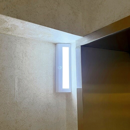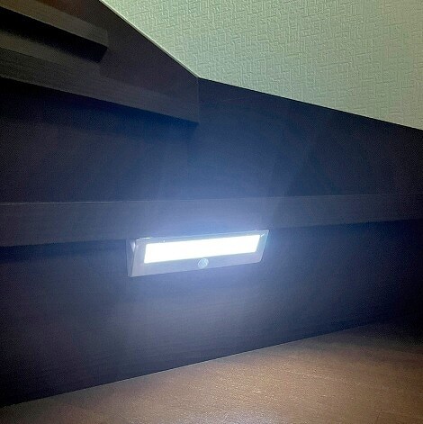 暗い場所で人感センサーが、人の熱を感知してLEDライトを優しく点灯させます。