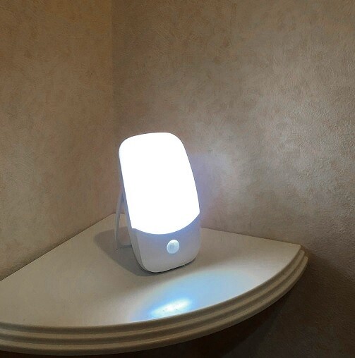 暗い場所で人感センサーが、人の熱を感知してLEDライトを優しく点灯させます。