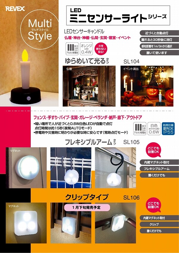 リーベックス/REVEX ミニセンサーライト ゆらめいて光るタイプ LEDライト SL104