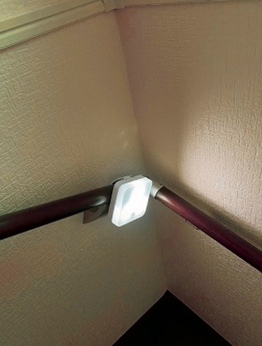 暗い場所で人感センサーが、人の熱を感知してLEDライトを優しく点灯させます。