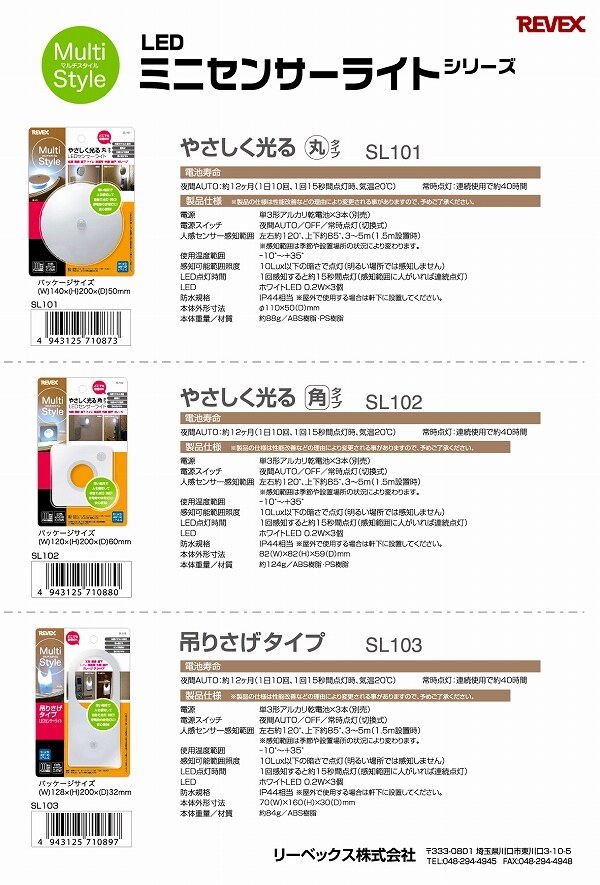 リーベックス/REVEX ミニセンサーライト 丸タイプ LEDライト SL101