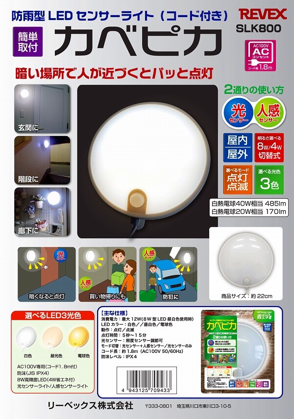 リーベックス/REVEX カベピカ LEDセンサーライト SLK800