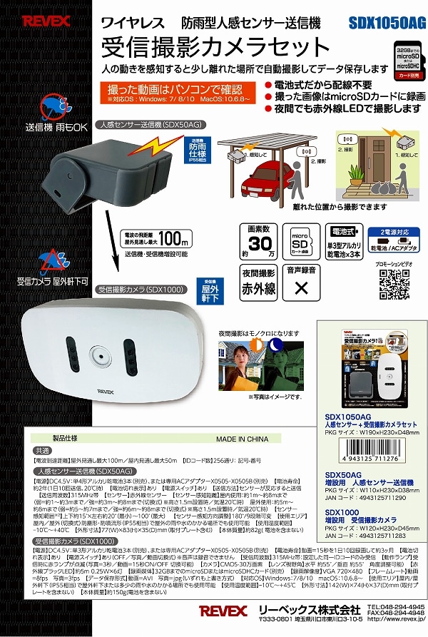 リーベックス/REVEX ワイヤレス人感センサー&受信撮影カメラ SDX1050AG
