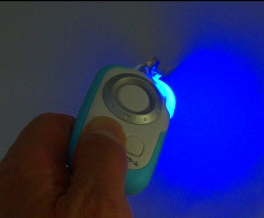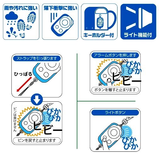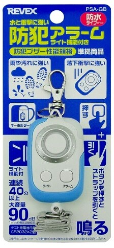 水と衝撃に強い「ライト機能付き防犯アラーム」です。