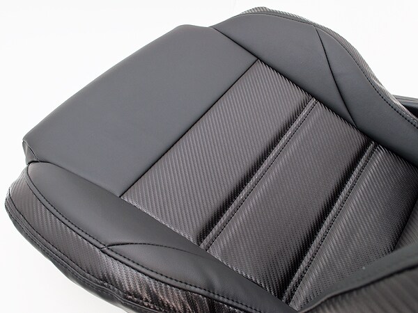 派手さを抑えつつ、スポーティなカーボン調生地をあしらった「ブラック×カーボン調」