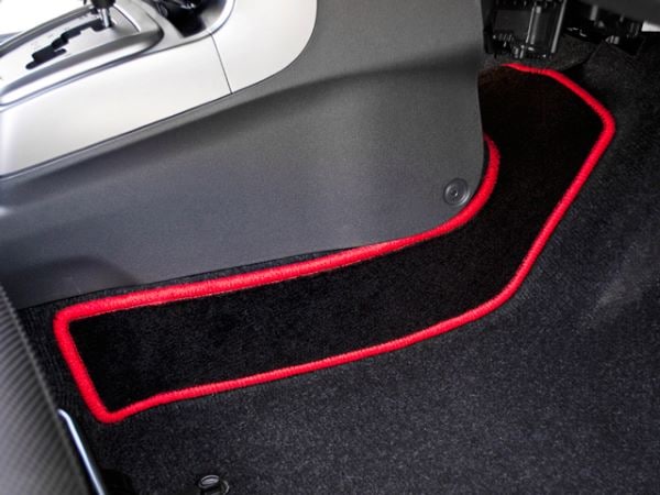 フロアマットだけでは覆いきれないフロアの隙間をしっかりガード!複雑な形状ですが、専用で設計する事でぴったりフィット!裏面にはマジックテープを縫い付けてありますのでズレ落ちる心配もありません。もちろん、純正のマットとぴったり合わせてご使用いただけます。