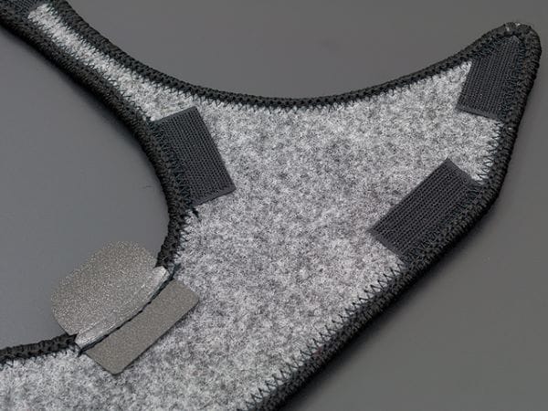 複雑な形状ですが専用で設計する事でぴったりフィット!裏面にはマジックテープを縫い付けてありますのでズレ落ちる心配もありません。