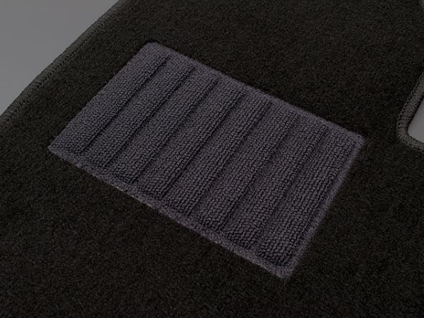 フロアマット裏面は従来のズレやすいラバースパイクを廃止し、ズレに強く吸音性の高い特殊フエルト生地を使用。さらにフック穴や運転席にはマジックテープも装備し、マットのズレを低減し安心してドライビングをお楽しみいただける仕様となっております。