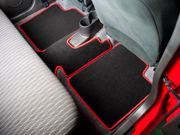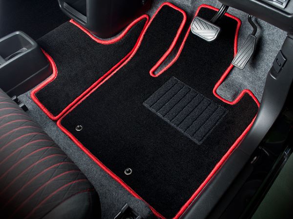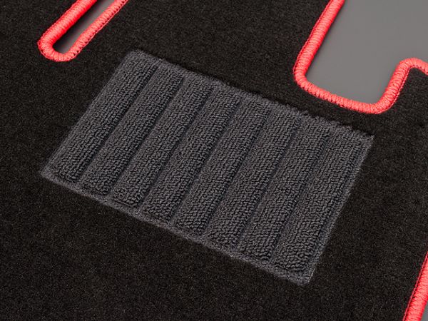 フロアマット裏面は従来のズレやすいラバースパイクを廃止し、ズレに強く吸音性の高い特殊フエルト生地を使用。さらにフック穴や運転席にはマジックテープも装備し、マットのズレを低減し安心してドライビングをお楽しみいただける仕様となっております。