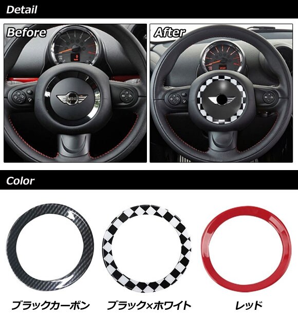ステアリングエンブレムフレーム MINI(BMW) R55/R56/R57/R58/R59/R60/R61 2007年~2014年 ブラック×ホワイト ABS製 AP-IT3051-BKWH