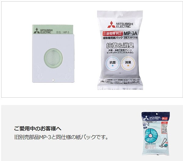 三菱電機 掃除機用紙パック 抗菌消臭クリーン紙パック 入数:1セット(3枚) MP-3Aのレビュー