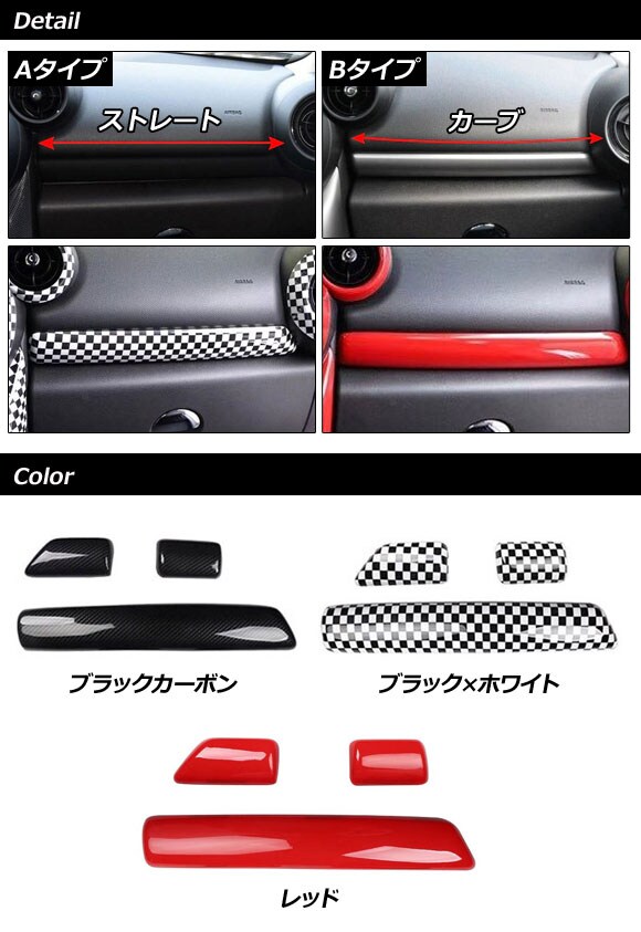 ダッシュボードパネルカバー MINI(BMW) R60/R61 2011年~2017年 ブラック×ホワイト ABS製 Bタイプ 左ハンドル用 入数:1セット(3個) AP-IT3056-B-BKWH