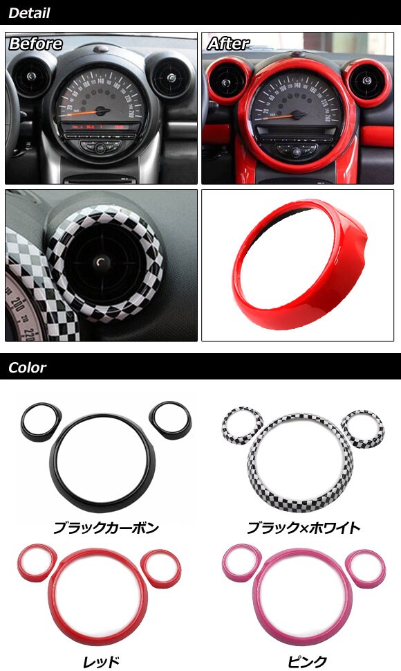 スピードメーター&エアコンダクトカバー MINI(BMW) R60/R61 後期 2014年~2017年 ピンク ABS製 入数:1セット(3個) AP-IT3057-PI