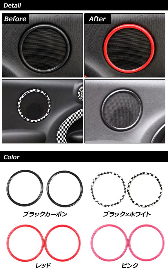 ドアスピーカーリングカバー リア用 MINI(BMW) R60 2011年~2017年 ブラック×ホワイト ABS製 入数:1セット(2個) AP-IT3067-BKWHのレビュー