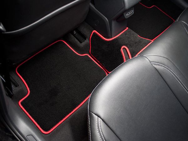 フロアマット裏面は従来のズレやすいラバースパイクを廃止しズレに強く吸音性の高い特殊フエルト生地を使用。ズレ防止のフックも純正をそのまま使用できる専用リングを装備し、マットのズレを低減し安心してドライビングをお楽しみいただける仕様となっております。