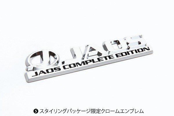 力強いJAOS styleを作り上げると共に、パッケージ限定のクロームエンブレム(非売品)によりプレミアムスタイルをお楽しみいただけます。