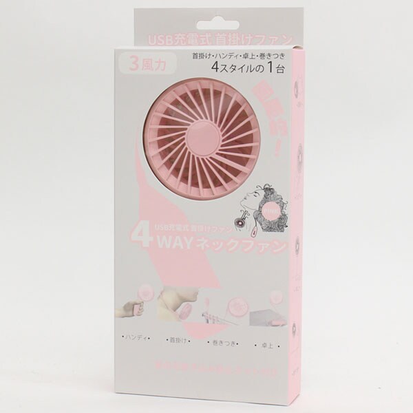 HIRO 4WAY ネックファン ピンク USB充電式 首掛け・ハンディ・卓上・巻きつきの4スタイル HCF20-06GV PK