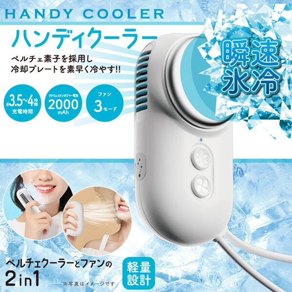 HIRO ペルチェ式 ハンディクーラー ホワイト USB充電式 ペルチェクーラーとファンの2in1! HDL-9276