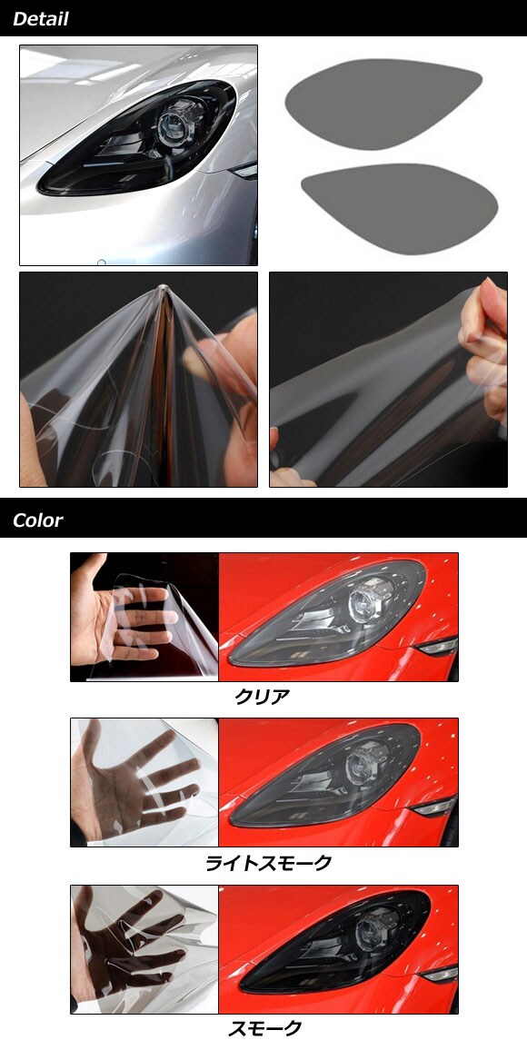 ヘッドライトフィルム ポルシェ 718ケイマン 982 2016年04月~ スモーク TPU製 入数:1セット(左右)