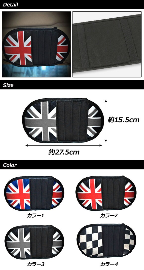 サンバイザーケース サンバイザーホルダー サンバイザーカバー 収納ホルダー 収納ケース 日除け収納 日除けホルダー 日除けケース サンバイザーポケット インナーケース カードホルダー カードケース 小物入れ MINI ミニ BMW ビーエム ホルダー ケース ポケット カバー 収納グッズ サンバイザー バイザー サンシェード シェード 日除け カード 小物 CD 便利 収納 整理 整頓 増設 増やす 取り付け 固定 ゴム 車内 車内収納 車載用 運転席 助手席 頭上 PU レザー フェイクレザー 合皮 合成皮革 ユニオンジャック ブラックジャック 国旗 旗