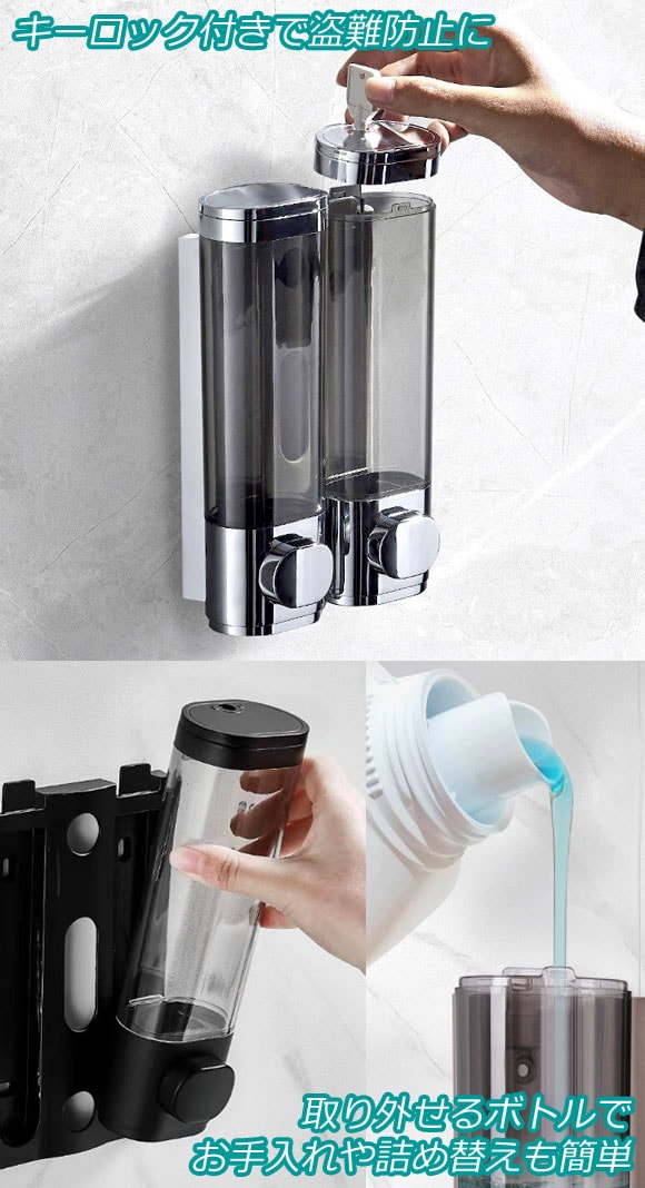 ディスペンサー 石鹸ディスペンサー シャンプーディスペンサー ソープボトル ポンプボトル シャンプーボトル 詰替容器 詰め替えボトル 詰替えボトル 詰替ボトル せっけん 石鹸 ソープ ハンドソープ シャンプー リンス コンディショナー ボディーソープ ジェル 洗剤 容器 詰め替え 詰替え 詰替 液体容器 バスグッズ バスルーム バス お風呂 風呂場 風呂 浴室 洗面台 洗面所 手洗い 脱衣室 玄関 衛生 飲食店 病院 自宅 家 会社 オフィス 介護施設 施設 ホテル 学校 店 壁 壁付 壁掛け 便利グッズ 便利 グッズ ABS ABS樹脂 300 300ミリ