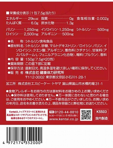 Kentai BCAA シトルリンプラス 7.5g×20包 グレープ風味 K5503