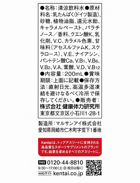 Kentai プロテインシェイク 200ml キャラメル風味 K7109