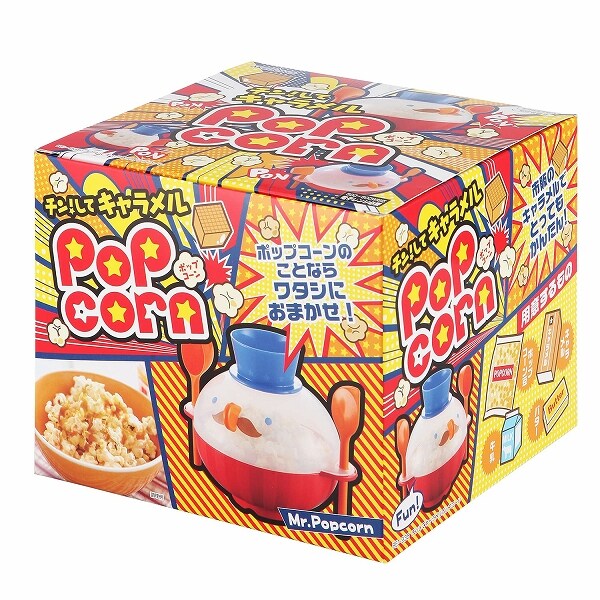 ポップコーン作りに必要な道具が、かわいいキャラクターでひとつにまとまりました!
