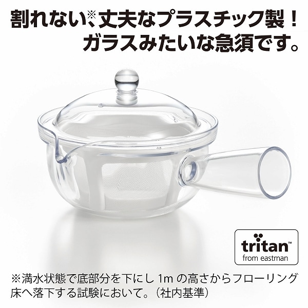 プラスチック製で割れにくいティーポットに、網目の細かいポリエステル製織物ストレーナータイプが登場!