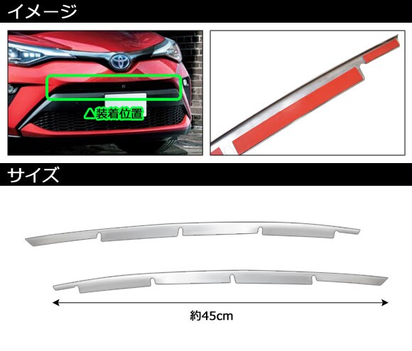 フロントグリルカバー トヨタ C-HR ZYX10/NGX50 後期 2019年10月~ 鏡面シルバー ステンレス製 入数:1セット(2個) AP-FG614