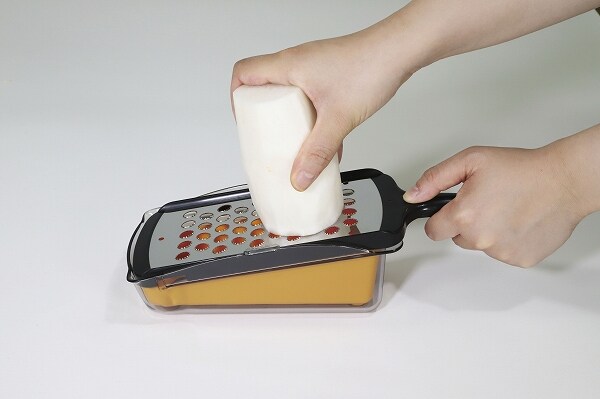 縦おろしで粗めのシャキシャキ食感、円おろしできめ細かいフワフワ食感の2種類のおろしができます