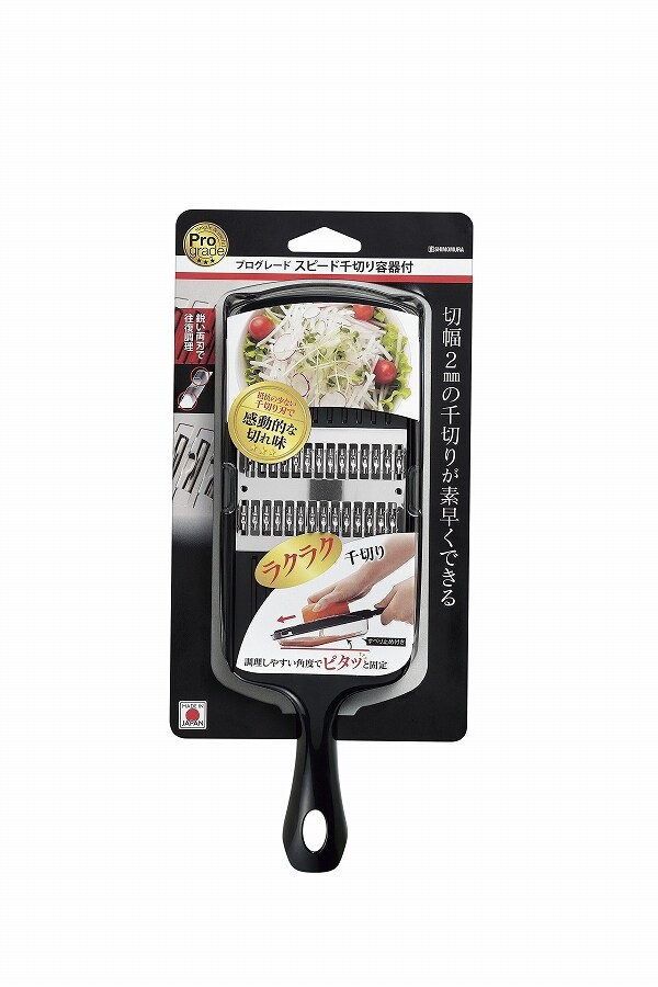 Pro grade ぷろぐれーど SHIMOMURA しもむらこうぎょう 下村工業 千切り器 スライサー スライス 快速 時短 2mm 極薄 両刃 往復刃 往復調理 野菜 にんじん 大根 きゅうり 容器付き すべり止め付き 日本製 ステンレス