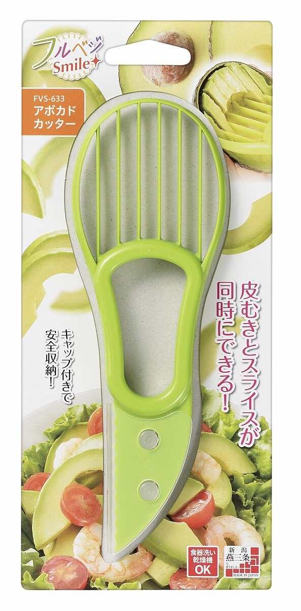 ふるべじすまいる フルベジ 下村工業 アボガドカッター アボカド用カッター アボカドスライサー カット 皮むき器 皮剥き器 スライス 薄切り 種取り くりぬき くり抜き キャップ付き 安全 日本製