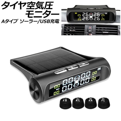 タイヤ空気圧モニター Aタイプ バルブキャップ交換型 ソーラー/USB充電 汎用 AP-EC802-A