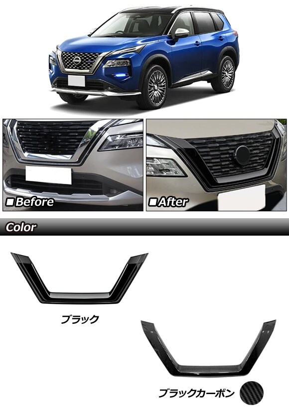 フロントグリルガーニッシュ 日産 エクストレイル T33系 2022年07月~ ブラックカーボン ABS製 AP-FG623-BKC