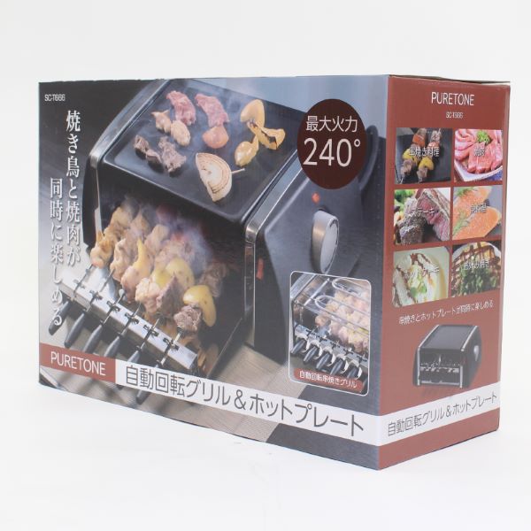 HIRO 自動回転グリル&ホットプレート 焼き鳥と焼肉が同時に楽しめる! SC-T666